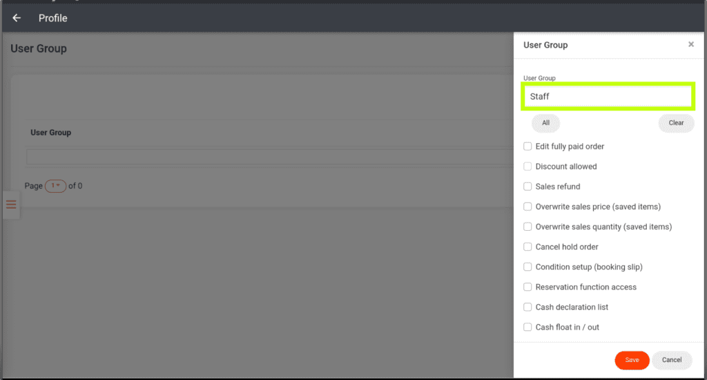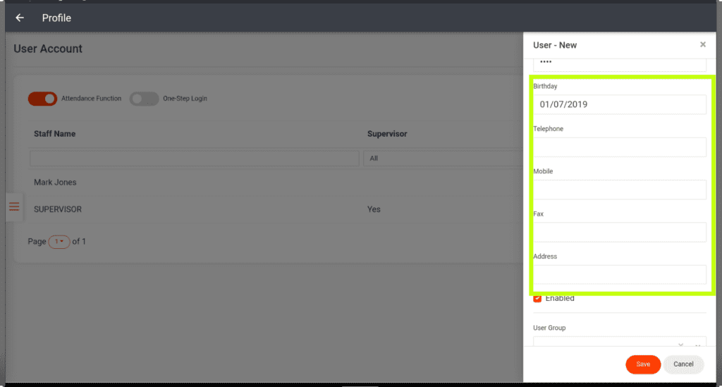 The User Group is a drop down list that allows user to select any user groups that has been previously set up.