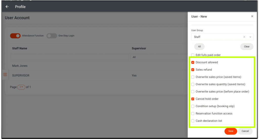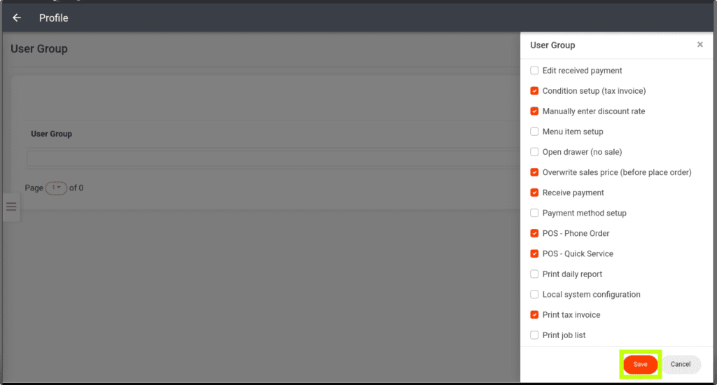 If no User Group is set up or there are other permissions that is required to give the user, scroll through the permissions and tick the preferred ones. Click Save and Yes to save the User.