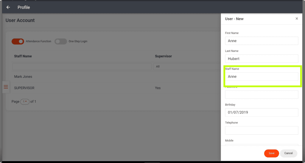 The Staff Name will self-populate with the First and Last Name. You can change this at this time if you wish.