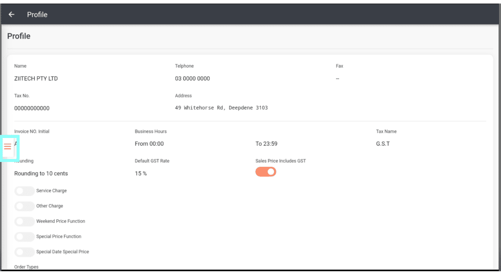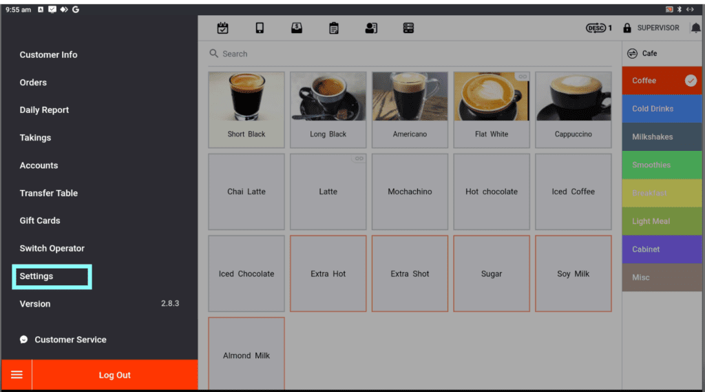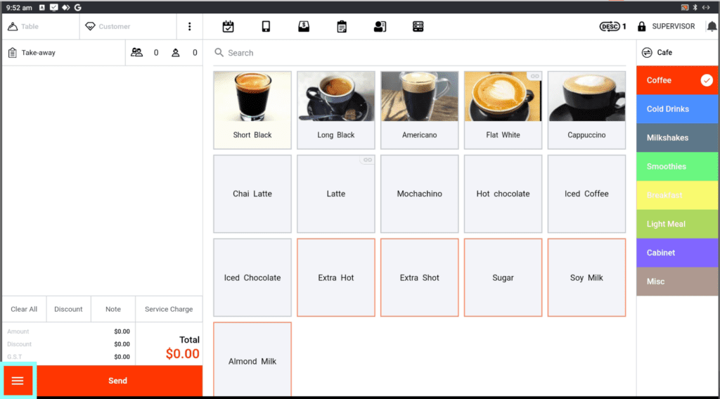 Once logged into the till with a Supervisor password, select the three lines at the bottom left of the screen.