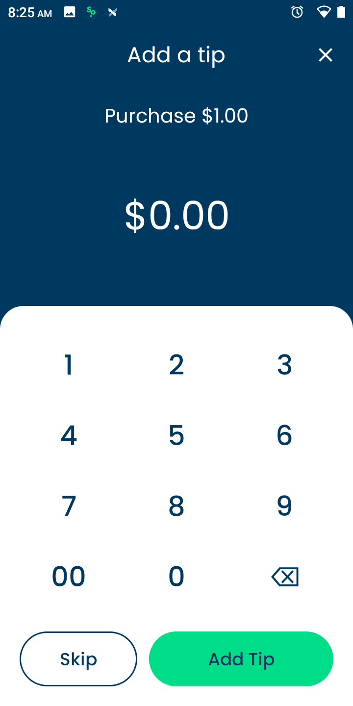 - Press ‘ENTER’ to Skip “Add Tip?” or enter the amount of tip.