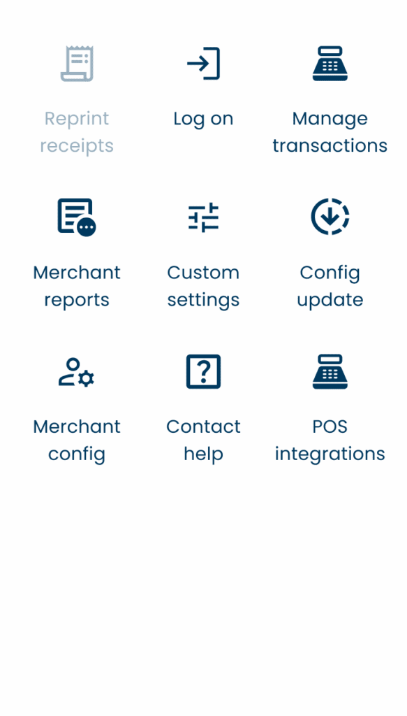 - Tap on ‘Merchant Menu’ to display a selection of options